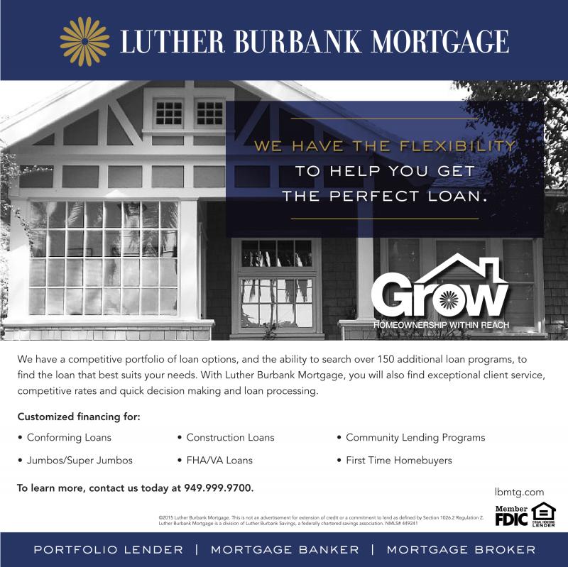 ©2015 Luther Burbank Mortgage. This is not an advertisement for extension of credit or acommitment to lend as defined by Section 1026.2 Regulation Z. Luther Burbank Mortgage is adivision of Luther Burbank Savings, afederally chartered savings association. NMLS# 449241