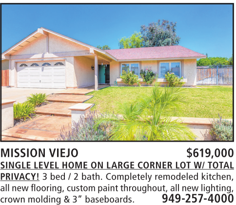 MISSION VIEJO $619,000 SINGLE LEVEL HOME ON LARGE CORNER LOT W/ TOTAL