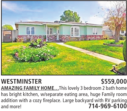 addition with acozy fireplace. Large backyard with RV parking andmore! 714-969-6100