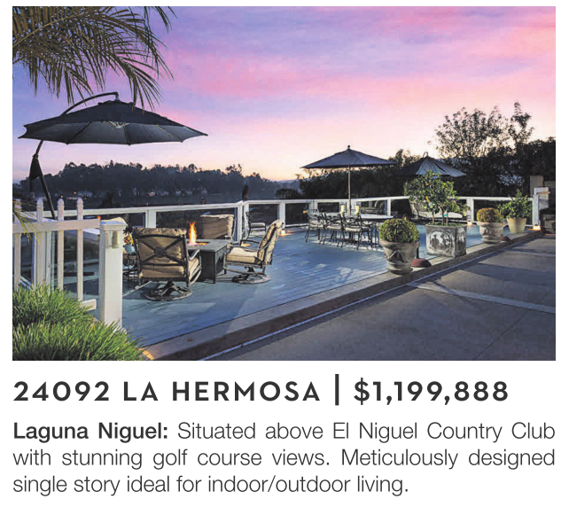 Laguna Niguel: Situated above El Niguel Country Club with stunning golf course views. Meticulously designed single story ideal for indoor/outdoor living.