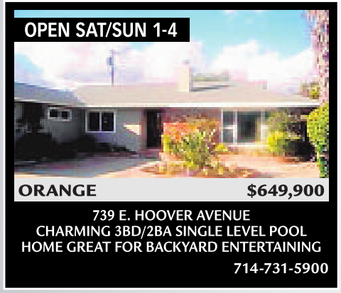 739 E. HOOVER AVENUE CHARMING 3BD/2BA SINGLE LEVEL POOL HOME GREAT FOR BACKYARD ENTERTAINING 714-731-5900