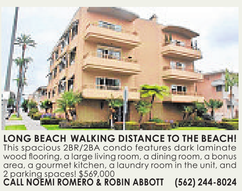 LONG BEACH WALKING DISTANCE TOTHE BEACH! This spacious 2BR/2BA condo features dark laminate wood flooring, alarge living room,adiningroom, abonus area, agourmet kitchen, alaundry room in the unit, and 2parking spaces! $569,000 CALL NOEMI ROMERO &ROBIN ABBOTT (562) 244-8024