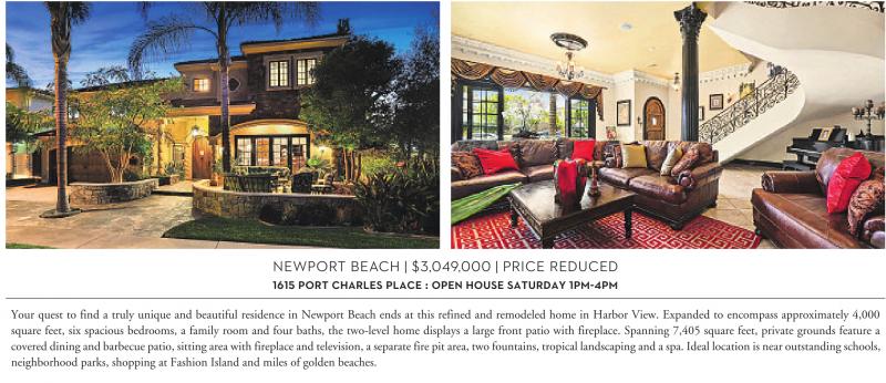 NEWPORT BEACH | $3,049,000 | PRICE REDUCED 1615 PORT CHARLES PLACE : OPEN HOUSE SATURDAY 1PM-4PM