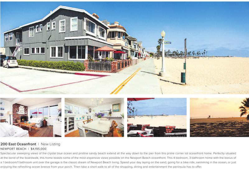 200 East Oceanfront | New Listing NEWPORT BEACH | $4,195,000 Spectacular sweeping views of the crystal blue ocean and pristine sandy beach extend all the way down to the pier from this prime corner lot oceanfront home. Perfectly situated at the bend of the boardwalk, this home boasts some of the most expansive views possible on the Newport Beach oceanfront. This 4 bedroom, 3 bathroom home with the bonus of a 1 bedroom/1 bathroom unit over the garage is the classic dream of Newport Beach living. Spend your day laying on the sand, going for a bike ride, swimming in the ocean, or just enjoying the refreshing ocean breeze from your porch. Then take a short walk to all of the shopping, dining and entertainment the peninsula has to offer.