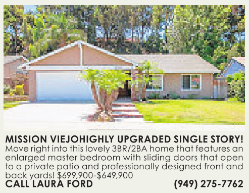 to aprivate patio and professionally designed front and back yards! $699,900-$649,900 CALL LAURA FORD (949) 275-7762