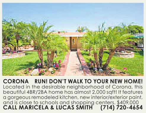 and isclose to schools and shopping centers. $409,000 CALL MARICELA &LUCAS SMITH (714) 720-4654