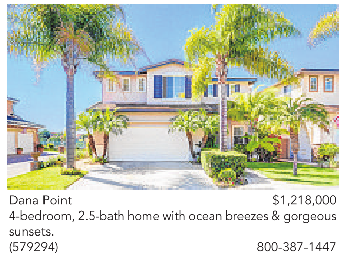 Dana Point $1,218,000 4-bedroom, 2.5-bath home with ocean breezes & gorgeous sunsets. (579294) 800-387-1447