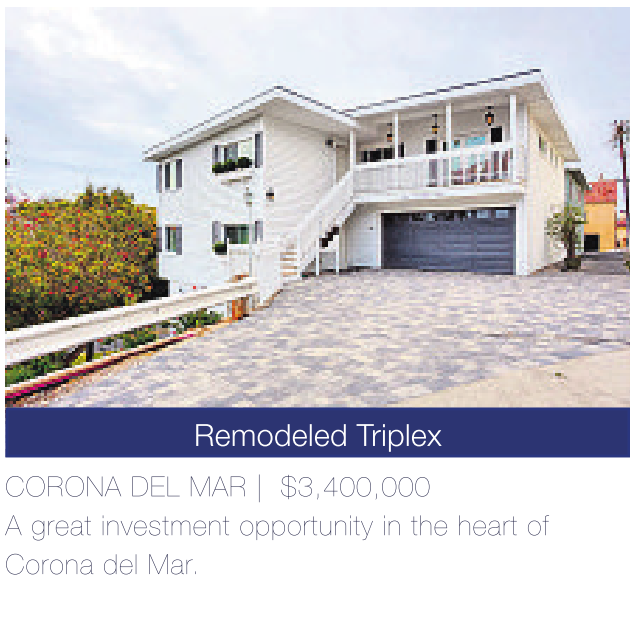 Remodeled Triplex CORONA DEL MAR | $3,400,000 A great investment opportunity in the heart of Corona del Mar.
