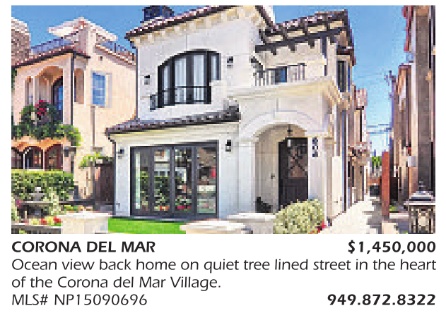 CORONA DEL MAR $1,450,000 Ocean view back home on quiet tree lined street in the heart of the Corona del Mar Village. MLS# NP15090696 949.872.8322