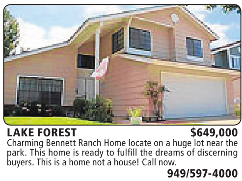 LAKE FOREST $649,000 Charming Bennett Ranch Home locate on ahuge lot near the