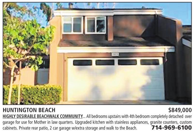 garage for use for Mother in law quarters. Upgraded kitchen with stainless appliances, granite counters, custom cabinets.Privaterear patio, 2car garage w/extrastorageand walk to theBeach. 714-969-6100