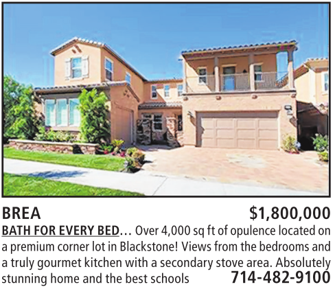 BREA $1,800,000 BATH FOREVERY BED… Over 4,000 sq ft of opulence locatedon