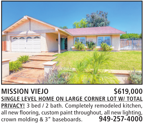 MISSION VIEJO $619,000 SINGLE LEVEL HOME ON LARGE CORNER LOT W/ TOTAL