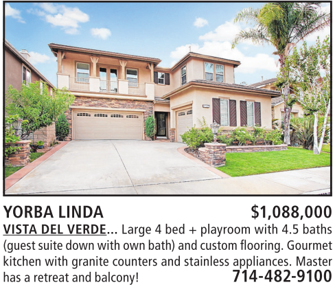 YORBA LINDA $1,088,000 VISTA DEL VERDE... Large 4bed +playroom with 4.5 baths