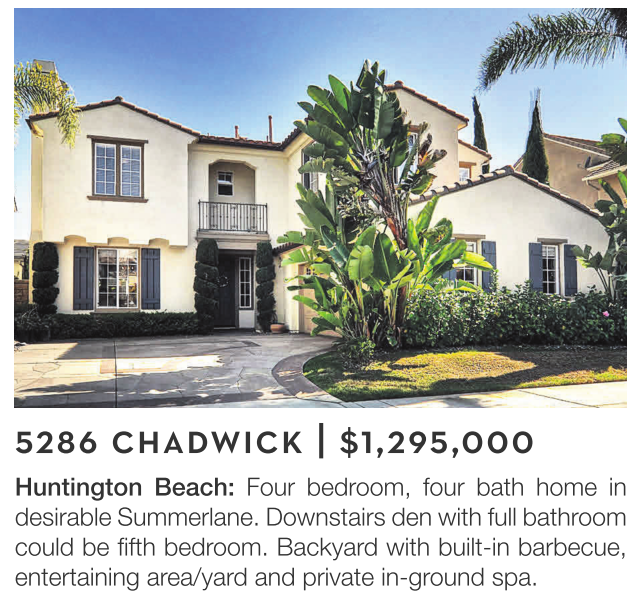 Huntington Beach: Four bedroom, four bath home in desirable Summerlane. Downstairs den with full bathroom could be fifth bedroom. Backyard with built-in barbecue, entertaining area/yard and private in-ground spa.