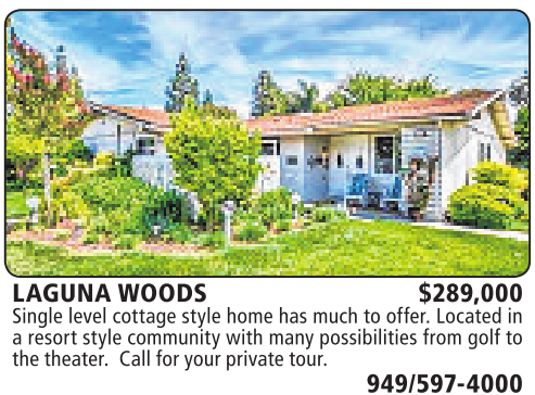 LAGUNA WOODS $289,000 Single level cottage style home has much tooffer. Located in aresort style community with many possibilities from golf to thetheater. Callfor your private tour.