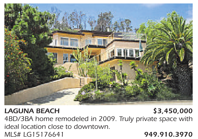 LAGUNA BEACH $3,450,000 4BD/3BA home remodeled in 2009. Truly private space with ideal location close to downtown. MLS# LG15176641 949.910.3970