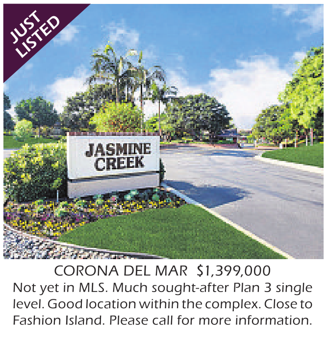 CORONA DEL MAR $1,399,000 Not yet in MLS. Much sought-after Plan 3 single level. Good location within the complex. Closeto Fashion Island. Please call for more information.