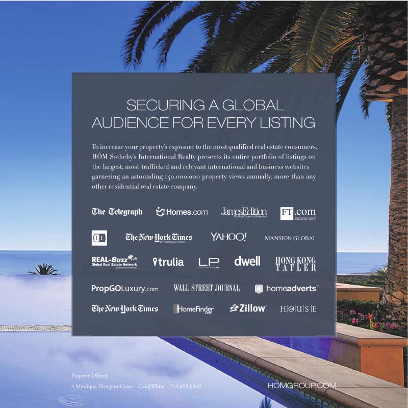 To increase your property’s exposure to the most qualified real estate consumers, HÔM Sotheby’s International Realty presents its entire portfolio of listings on the largest, most-trafficked and relevant international and business websites — garnering an astounding 140,000,000 property views annually, more than any other residential real estate company.