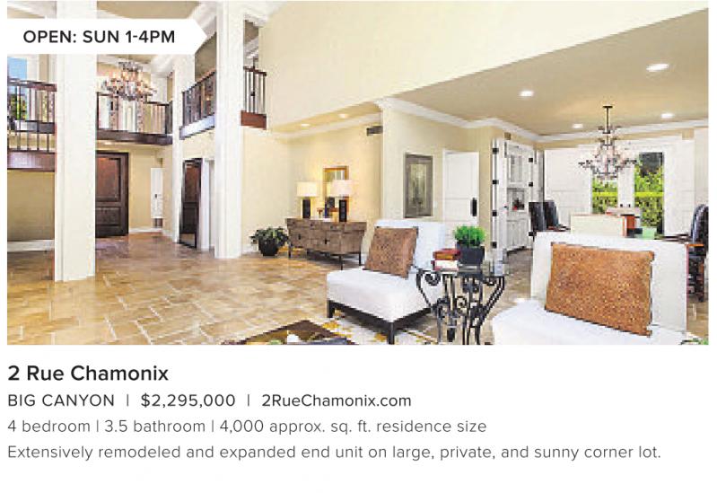 BIG CANYON | $2,295,000 | 2RueChamonix.com 4 bedroom | 3.5 bathroom | 4,000 approx. sq. ft. residence size Extensively remodeled and expanded end unit on large, private, and sunny corner lot.