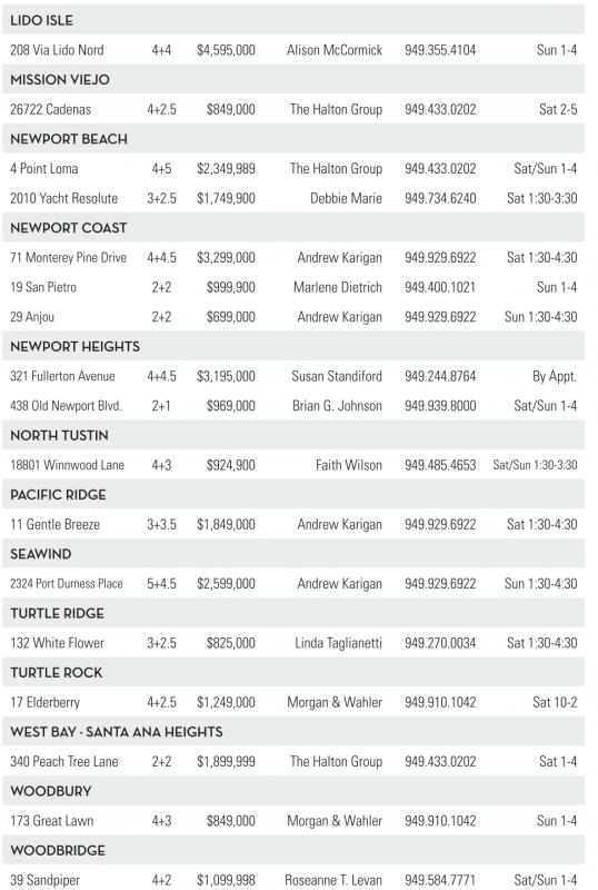 71 Monterey Pine Drive 4+4.5 $3,299,000 Andrew Karigan 949.929.6922 Sat 1:30-4:30