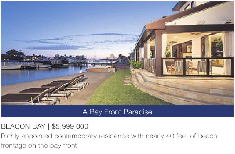 BEACON BAY | $5,999,000 Richly appointed contemporary residence with nearly 40 feet of beach frontage on the bay front.