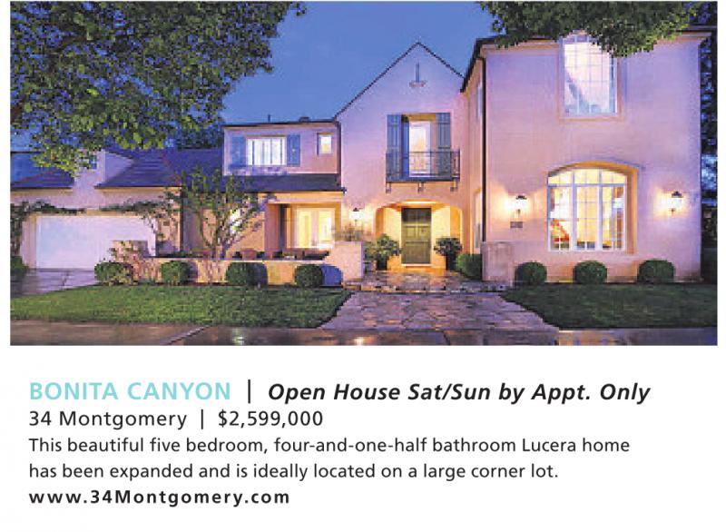 BONITA CANYON | Open House Sat/Sun by Appt. Only 34 Montgomery | $2,599,000