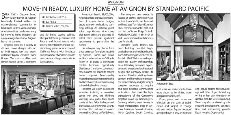 Blackstone in Brea. With ahandful of estate-caliber residences ready for move-in, home shoppers can enjoyamagnificentnew Avignon home this summer.