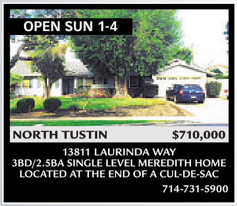 13811 LAURINDA WAY 3BD/2.5BA SINGLE LEVEL MEREDITH HOME LOCATED AT THE END OF A CUL-DE-SAC 714-731-5900
