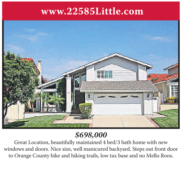 windows and doors.Nicesize, well manicured backyard.Steps outfront door to Orange County bike and hiking trails, low taxbaseand no MelloRoos.