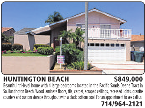 HUNTINGTON BEACH $849,000 Beautiful tri-level home with 4large bedrooms located inthe Pacific Sands Deane Tract in
