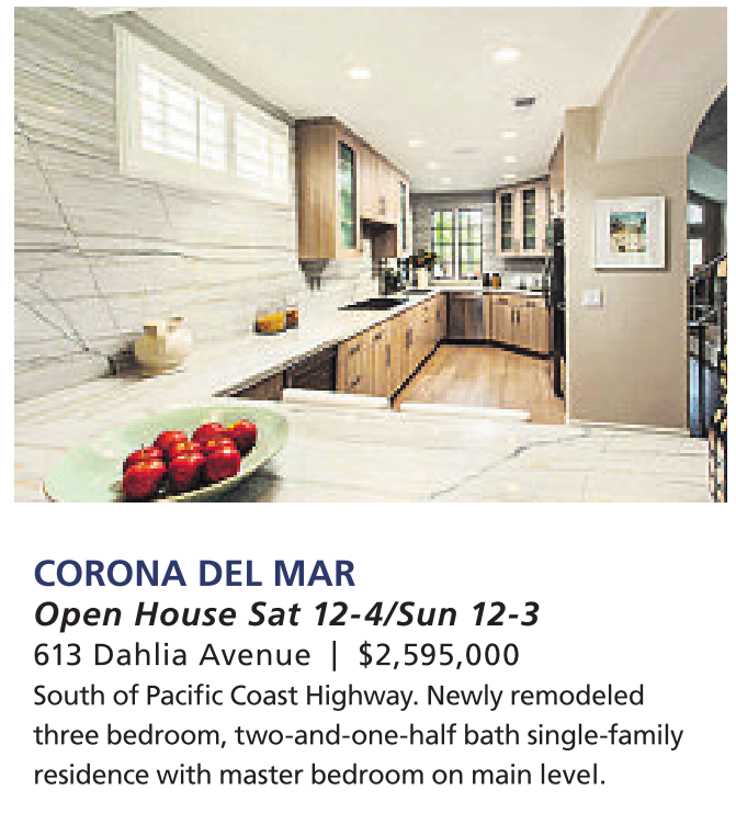 CORONA DEL MAR Open House Sat 12-4/Sun 12-3