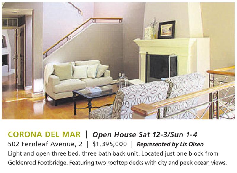 CORONA DEL MAR | Open House Sat 12-3/Sun 1-4 502 Fernleaf Avenue, 2 | $1,395,000 | Represented by Lis Olsen