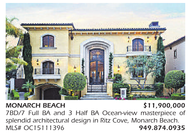 MONARCH BEACH $11,900,000 7BD/7 Full BA and 3 Half BA Ocean-view masterpiece of splendid architectural design in Ritz Cove, Monarch Beach. MLS# OC15111396 949.874.0935