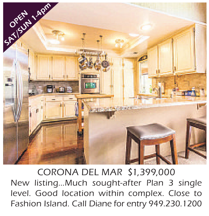CORONA DEL MAR $1,399,000 New listing...Much sought-after Plan 3 single level. Good location within complex. Close to Fashion Island. Call Diane for entry 949.230.1200