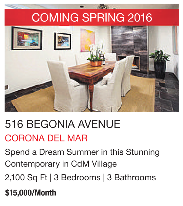 Spend a Dream Summer in this Stunning Contemporary in CdM Village 2,100 Sq Ft | 3 Bedrooms | 3 Bathrooms $15,000/Month