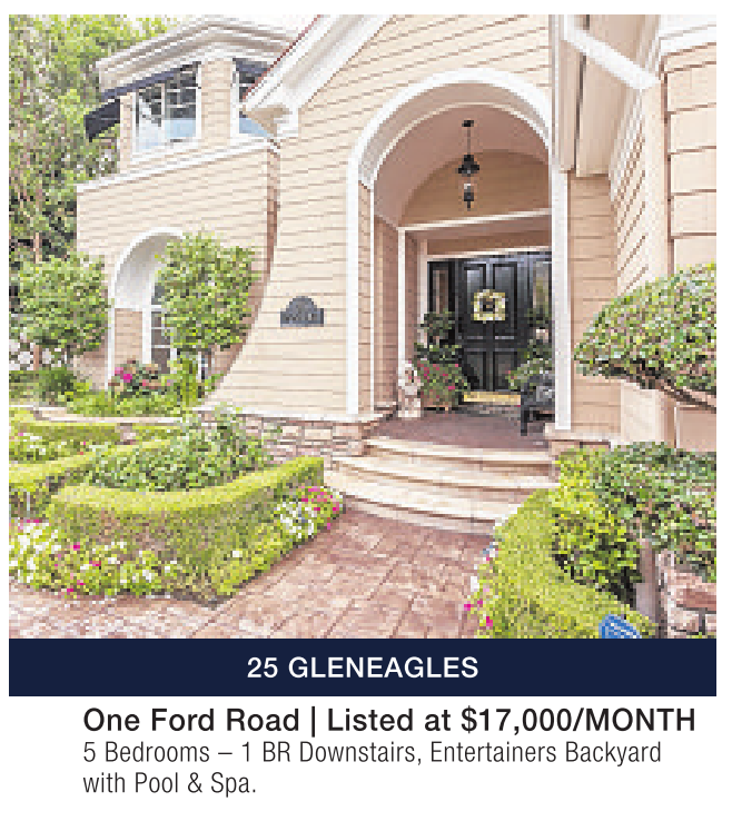 One Ford Road | Listed at $17,000/MONTH 5 Bedrooms – 1 BR Downstairs, Entertainers Backyard with Pool & Spa.