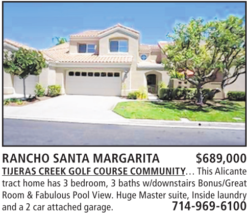 RANCHO SANTA MARGARITA $689,000 TIJERAS CREEK GOLF COURSE COMMUNITY…This Alicante tract home has 3bedroom, 3baths w/downstairs Bonus/Great Room &Fabulous Pool View.Huge Mastersuite,Insidelaundry
