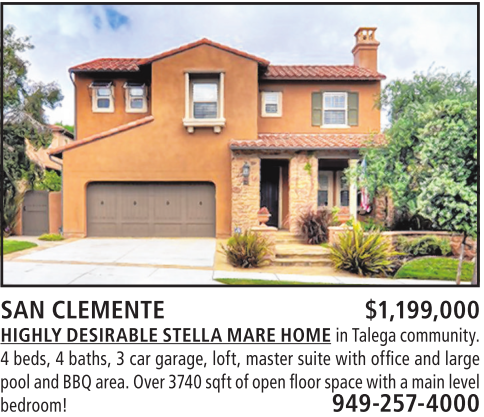 SAN CLEMENTE $1,199,000 HIGHLY DESIRABLESTELLAMAREHOME in Talega community. 4beds, 4baths, 3car garage, loft, master suite with office and large