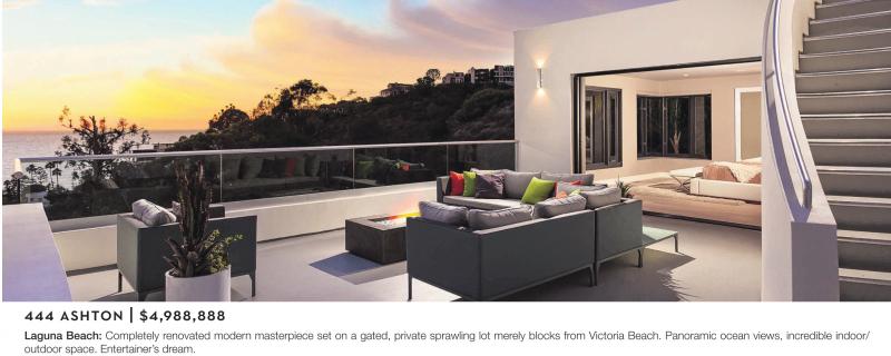 Laguna Beach: Completely renovated modern masterpiece set on a gated, private sprawling lot merely blocks from Victoria Beach. Panoramic ocean views, incredible indoor/ outdoor space. Entertainer’s dream.