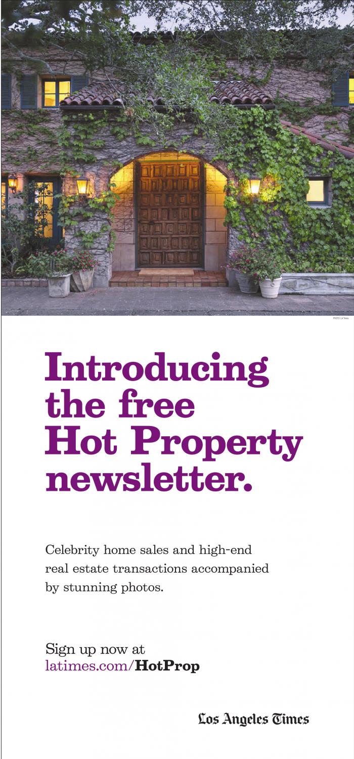 PHOTO: LA Times Introducing the free Hot Property newsletter. Celebrity home sales and high-end real estate transactions accompanied by stunning photos. Sign up now at latimes.com/HotProp