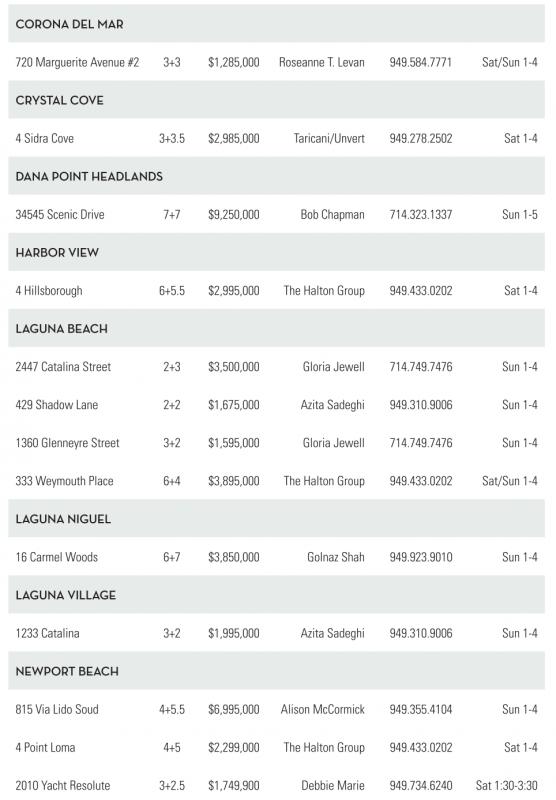 16 Carmel Woods 6+7 $3,850,000 Golnaz Shah 949.923.9010 Sun 1-4