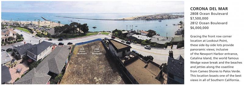 Gracing the front row corner location at Lookout Point, these side-by-side lots provide panoramic views; inclusive of the Newport Harbor entrance, Catalina Island, the world famous Wedge wave break and the beaches and jetties along the coastline from Cameo Shores to Palos Verde. This location boasts one of the best views in all of Southern California.