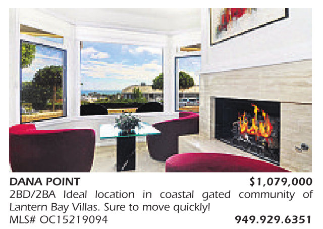DANA POINT $1,079,000 2BD/2BA Ideal location in coastal gated community of Lantern Bay Villas. Sure to move quickly! MLS# OC15219094 949.929.6351