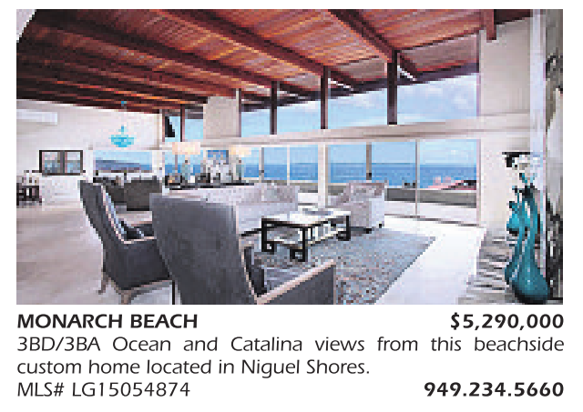 MONARCH BEACH $5,290,000 3BD/3BA Ocean and Catalina views from this beachside custom home located in Niguel Shores. MLS# LG15054874 949.234.5660