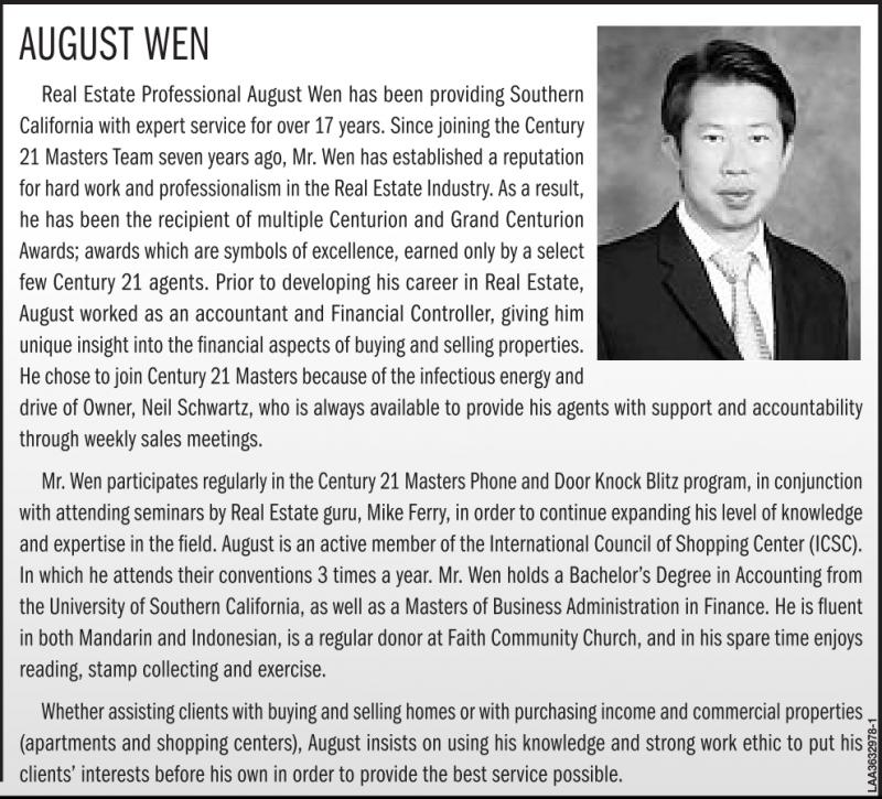 California with expert service for over 17 years. Since joining the Century 21 Masters Team seven years ago, Mr. Wen has established a reputation