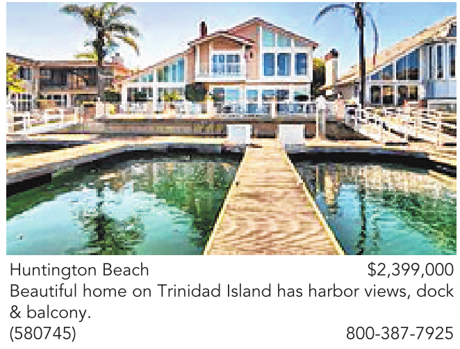 Huntington Beach $2,399,000 Beautiful home on Trinidad Island has harbor views, dock & balcony. (580745) 800-387-7925