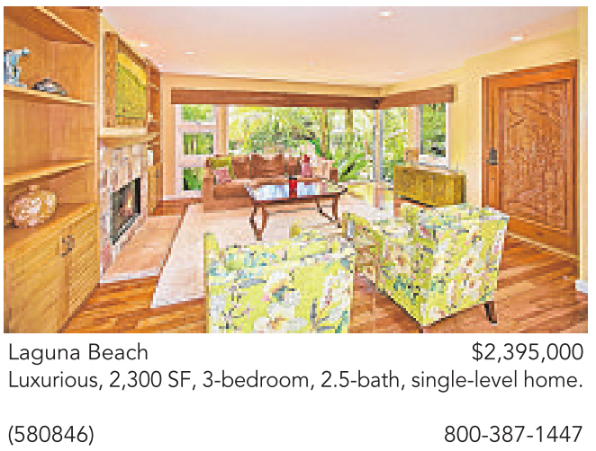 Laguna Beach $2,395,000 Luxurious, 2,300 SF, 3-bedroom, 2.5-bath, single-level home.