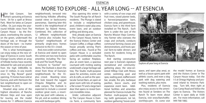 ranch to learn more about esencia, visit www.ranchoMissionViejo.cpm. Or, come visit