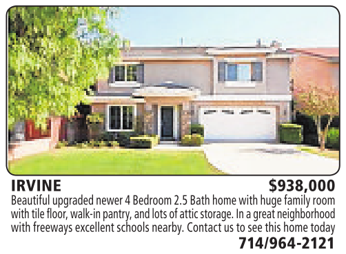 IRVINE $938,000 Beautifulupgraded newer4Bedroom 2.5Bathhome with huge family room with tile floor,walk-inpantry,and lots of atticstorage.Inagreat neighborhood with freewaysexcellent schoolsnearby. Contactustosee this home today 714/964-2121